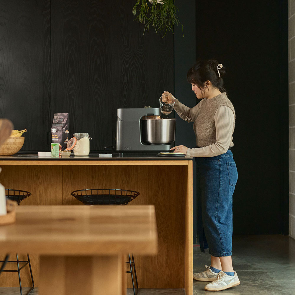 - Sicherheitsdeckel mit Öffnung: einfaches Nachfüllen während des Knetens.